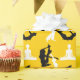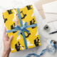 Olika yogafejor med vektor i svartvitt bildar ett öga-fångstande mönster mot denna bakgrund av senap-gulten.