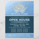 Yoga Studio Meditation Instructor / Life Coach / Healer / Reiki Master / Massage Therapy Open House Flyer Template - Modern Elegant Faux Gold Foil Lotus on Blue Guld Struktur Background.