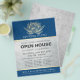 Yoga Studio Meditation Instructor / Life Coach / Healer / Reiki Master / Massage Therapy Open House Flyer Template - Modern Elegant Faux Guld Lotus on PANTONE 19-4052 TCX Classic Blue Färg Grunge Background.