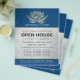 Yoga Studio Meditation Instructor / Life Coach / Healer / Reiki Master / Massage Therapy Open House Flyer Template - Modern Elegant Faux Guld Lotus on PANTONE 19-4052 TCX Classic Blue Färg Grunge Background.