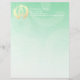Yoga Studio Meditation Instructor / Life Coach / Healer / Reiki Master / Massage Therapy Letterhead template - Elegant Calligraphy Faux Gold Foil Yoga Meditation Easy Pose / Sukhasana Pose med ZEN Symbol och OM Symbol på Grönt Guld Foil Struktur Background.