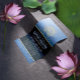 Yoga Studio Meditationsinstruktör / Life Coach / Helare / Reiki Master / Massage Terapi Öppet Hus Flygblad Mall - Modern Elegant Falskt Guld Folie Lotus på Blå Guld Textur Bakgrund.