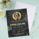 Elegant Watercolor Träd YOGA Meditation Instruktör Studio Öppet Hus Flyer Mall - Elegant Falskt Guld Folie Kalligrafi Yoga Meditation Hållning på Grunge Svart Watercolor Penseldrag Bakgrund.