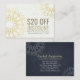 Yoga Meditation Instructor Studio Rabattkupongförmåns-/presentkortsmallar - Elegant Faux Gold Foil Mandala-symboler på Blommigt Damask Papper bakgrund.