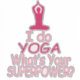 Stor rosa vinyldekal med bärton med yogapos-silhuett och texten "Jag gör yoga, vad är din superkraft?"