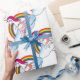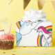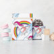 Happy Yoga Unicorn with rainbow meditating on a cloud.