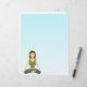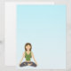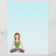Snyggtens vektor illustrerar en vacker brunettkvinna som gör yoga. Kvinnan är sitta på traditionellt lotus-läge. Hon har grönt tanktop och mörk grått byxor. Bakgrunden är en underbar blå övertoning.