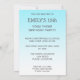 Desteis söta yoga-tema födelsedagsfest inbjudan-kortmall med en söt vektorillustration av en vacker brunettkvinna som gör yoga. Kvinnan är sitta på traditionellt lotus-läge. Hon har grönt tanktop och mörk grått byxor. Bakgrunden är en underbar blå övertoning.