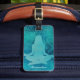 Resa i stil med din egen anpassade bagagetapp. Anpassa med namn, initialer, adress, mobilt nummer, e-post eller vad du vill. Vissa resenärer kanske inte vill ha en adress eller någon annan identifierande information - så anpassa din kontaktinformation hur som helst. Zen och fred med en yogaform i blå färg-hues.