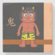 Den här stenen underlägg ett chibi, tecknad teckning av en röd oni. ONI (鬼) är den japanska motsvarigheten till ett ogre. De framställs ofta med röd hud och röda horn, bär en tiger tryckt lointrasa och bär på en spikad klubb. Monstrets namn, på japanska kanji, visas i den övre lämnat.