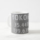 Modern stadsgrafik har latitud- och longitudkoordinater för Yokohama, Japan. Underbar presentidé för dem som kärlek ska resa eller som ett hemligt minne.