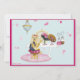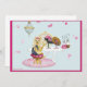 Cute design för barnens party, födelsedagar, meddelanden etc. Sötens rosa och blå design för flickor. Använda för inbjudningar, tackkort och många fler tillfällen. Lille Yorkshire Terrie sitta på att klä bord med sina söt och en chandelier i bakgrunden. Om du behöver hjälp med att anpassa kontakten med Greer på greerdesign@aol.com