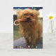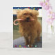 Vacker liten Yorkie som håller en karamellpinne som säger "slickar och kyssar, Ha en PAWsome jul