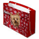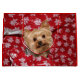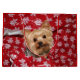 Den Yorkie eller Yorkshire terrieren, hund har lekt med gåvasjalen, och ha den roliga gulliga hund älskaregåvan hänga lös