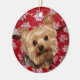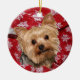 Den Yorkie eller Yorkshire terrieren, hund har haft roligt med prydnaden för den gulliga för hund älskare för julgåvasjalen den keramiska helgdag för jul