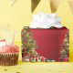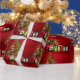 Yorkie, eller Yorkshire Terrier, hund gömmer bland Julklapp i hopp om att smyga upp på Jultomten hundälskare som slår pappra