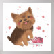 En söt illustration av en yorkshire-skräckare med en rosa tuggad sko