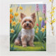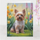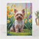 En glad hund sitter fredligt på lush grönt gräs, omgiven av färgfulla vår blommar under ett mjukt blå himmel. Den här digitala oljemålningen fångar upp ett ögonblick med uttryckliga penseldrag, varmt färg och en känsla av varm glädje.