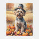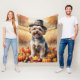 Yorkipoo in Höst löv Thanksgiving Art Fleecefilt