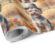 En vattenfärgsmålning stil av ett muntert sitta i hund i en hög av pulserande höst löv, omgiven av små pumpor och spridda hörn. Hund bär lite pilgrimhatt och beams med glädje, och fångade Thanksgivingens anda. I bakgrunden skapar mjuk skörd fält och träd med gyllene hud en fredlig landskapsambians. Struktur och varma, nedsmutsade hösttonar ge är en mysigt, nostalgisk perfekt för att fira säsongens skönhet.