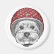Den här designen har en porträtt i en Yorkshire Terrier med en teal och röd polka-prickad hjälm.