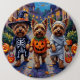 Adorable Yorkshire Terriers dressed in cute Halloween costumes carry pumpkin buckets while trick-or-treating beneath a glowing moon. This festive design captures the Yorkie’s silky coat, bright eyes, and lively personality, bringing the perfect blend of charm and spooky fun to Halloween night. A delightful treat for Yorkshire Terrier lovers, small dog enthusiasts, and anyone who enjoys celebrating Halloween with their furry companion.