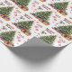 Det upprepade mönster på detta papper för julomslagning innehåller en bild av ett litet Yorkshire Terrier hund i ett torkat basket fyllt med blommor. Basket har en röd båge och sitter bredvid Helgdag träd. Stiliserad röd text och grönt säger GOD JUL", och din egen namnteckning finns i två fält för att du ska kunna anpassa den. Andra bilder som ingår i mönster är rött dekorativt snöflingor, polkagrisar och en peppermint lolly pop.
