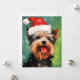 Färgfull och glatt juldesign med Yorkshire Terrier med en julhatt.