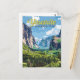 Yosemite vektorgrafikdesign. Parken är känd för sina gigantiska, gamla sekvoja-träd och för Tunnel View, det ikoniska panoramat över den höga Bridalveil Fall och granitklipporna El Capitan och Half Dome.