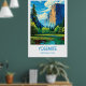 This Yosemite National Park travel poster offers a thoughtfully designed illustration inspired by classic American travel art. The artwork highlights Yosemite’s defining features—towering granite formations, forested valleys, and expansive skies—rendered with balanced color and a clean, timeless composition.