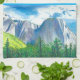 Fånga Sierra Nevadas majestätiska anda med denna Yosemite Landscape Kitchen Towel. Denna fantastiska originalillustration visar de ikoniska granitklipporna och den frodiga dalbottnen i Yosemite National Park, återgivna i en vacker palett av svala blåtoner, krispiga vita och djupa skogsgröna nyanser.