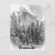 Ett svart och vitt foto av Yosemites halvdom, fångad efter säsongens första snöfall. Med den tillagda texten "Yosemite" är det en perfekt gåva eller en souvenir från ett besök i Yosemite.