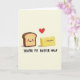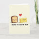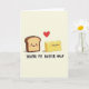 This funny and cute card features a smiling slice of toast and a happy stick of butter set against a soft, creamy background. The toast is warm tan with a darker crust, rosy cheeks, and a wide open grin as it faces the butter. The butter is golden yellow with matching rosy cheeks, closed eyes, and a peaceful smile. A bright red heart floats between them, clearly showing their sweet connection. Below the characters, the message “YOU’RE MY BUTTER HALF” appears in bold, easy-to-read block letters centered near the bottom. Gentle shadows beneath the toast, butter, and heart add depth while keeping the focus on the charming scene. This card is a fun and affectionate way to share Valentine’s Day feelings with someone who makes you feel perfectly matched.❤️