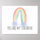You are my sunshine watercolor painted rainbow poster