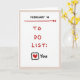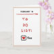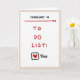 This image is a simple yet charming tribute to Valentine's Day, focusing on a heartfelt expression of love. Set against a clean white background with a soft beige border, the main feature is a handwritten "TO DO LIST:" in a bright red cursive style. Above it, "FEBRUARY 14" is written in bold black letters, emphasized by a red arrow, highlighting the romantic date. The composition leads your eyes down to the most important item on the list: a black checkbox with a solid red heart inside, symbolizing love and completion. Next to the heart, the word "You" in bold black letters stands out, representing the special person in mind. The overall feel is playful and affectionate, with crisp lines and contrasting colors adding clarity and purpose. The mix of structured typography and handwritten elements gives the image a personal touch and warm feel. This artwork beautifully captures love in a simple yet impactful way, where the checked heart shows not just acknowledgment, but active embrace and prioritization of love. It's a perfect piece for expressing Valentine's Day sentiments ❤️💌🍫.