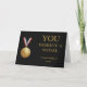 You Deserve a Medal Coach Elegant Funny Team Thank You Card. Celebrate your coach with humor and style using this “You Deserve a Medal” card, featuring an elegant black background, faux gold typography, and a gold medal design. The horizontal layout makes it perfect for team messages and group signatures, making it an ideal end-of-season gift. This design combines a premium look with a lighthearted message, perfect for players, parents, and teams who want to show appreciation in a memorable way. Note: Gold effect is printed, not real foil.