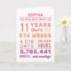 Personalized “You Have Been Loved For 11 Years” birthday card featuring milestone numbers—years, months, weeks, days, hours, and minutes. Add the recipient’s name for a custom touch and edit the inside message to make it your own. A unique, heartfelt birthday card perfect for an 11th birthday celebration.