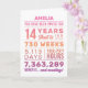 Personalized “You Have Been Loved For 14 Years” birthday card featuring milestone numbers—years, months, weeks, days, hours, and minutes. Add the recipient’s name for a custom touch and edit the inside message to make it your own. A unique, heartfelt birthday card perfect for a 14th birthday milestone celebration.