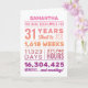 Personalized “You Have Been Loved For 31 Years” birthday card featuring milestone numbers—years, months, weeks, days, hours, and minutes. Add the recipient’s name for a custom touch and edit the inside message to make it your own. A unique, heartfelt birthday card perfect for a 31st birthday celebration.