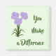Raise self esteem with this positive message of love and appreciation on a refrigerator magnet! Great gift idea for friends and kids. This design includes purple and pink flowers and the text "You Make a Difference".
