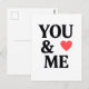 YOU & ME with Heart Minimal Valentine’s Day Typogr Vykort