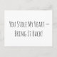 Cute Love Postcard – You Stole My Heart Bring It Back – Funny Romantic Card for Couples, Valentine’s Day Note