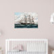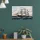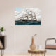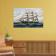 Detta är en förändrad och förbättrad återgivning av en klippande frakt som framställts av en kopia av den ursprungliga oljemålningen av Antonio Jacobsen, en berömd marschkonsmålare från slutet av 1800-talet och tidigt 1900-talet. Vi har expanderat bilden, retuscherat den och gjort den tydligare med hjälp av AI verktyg och Photoshop för att återställa information och skärpa. Reproduktionskonstverket betalar respekt för Antonio N. G. Jacobsen, som målade porträtt på New York Harbours fraktaser med exakt skrov linjer, riggning, taut canvas och livliga hav. Den ursprungliga målningen "Young America At Sea" är ett verkligt bevis på Jacobsens skicklighet som talangfull nautisk artist. Frakten, Young America, hade en fascinerande historia. William H. Webbs New York-varv inledde frakten 1853. Vid den tidpunkten var Young America en av de bästa amerikanska extremistklipporna. Hon seglade genom New York till San Francisco under Rush-eran i Guld och sträckte sig mycket till Liverpool, till China, Australien, Filippinerna, Mauritius med flera. Hon gjorde över 20 New York till San Francisco på västliga passager.