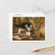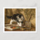 Ett vykort för bra med målningen från Romanticismen-rörelsen The Young Artist av den nederländska konstnären Henriëtte Ronner-Knip (1821-1909). En svart och vit tigerkatt leker med konstförråd på bord.