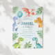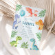 Inbjudan alla dina vänner och din familj till din födelsedagsfest med denna söta dinosauriinbjudan!