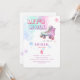 Unga flickor rullar i födelsedagsfest inbjudan. Låt oss Roll.