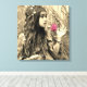 Kanvastryck av unga zigenare som håller rosa ros i sömntoner.
