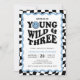 Young wild och tre blå glada pojke tredje födelsedagsinbjudan.