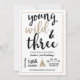 Denna Young Wild & Three-inbjudan har falskt guldglitter för att ge ditt rustika tema lite glamour!