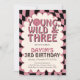 Young Wild and Three Pink Birthday Invitation | Cute Retro 3rd Birthday Party Invite for Girls